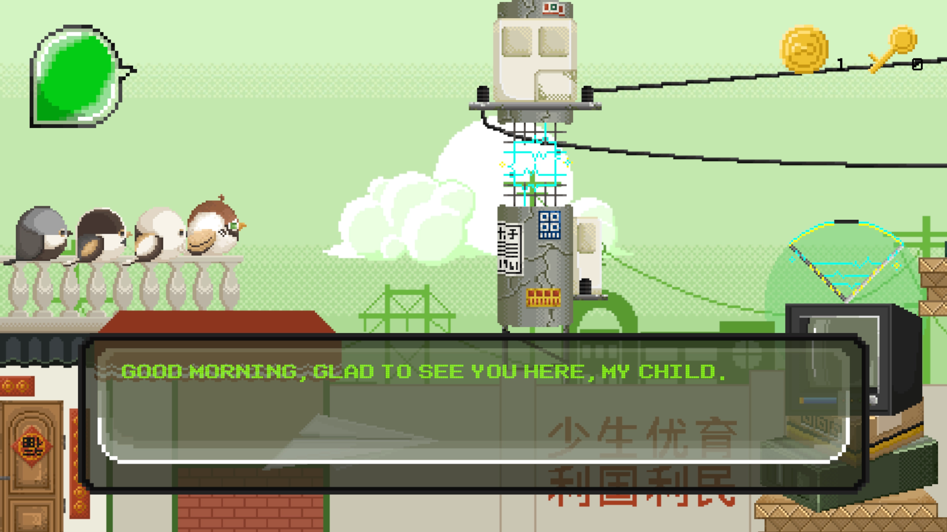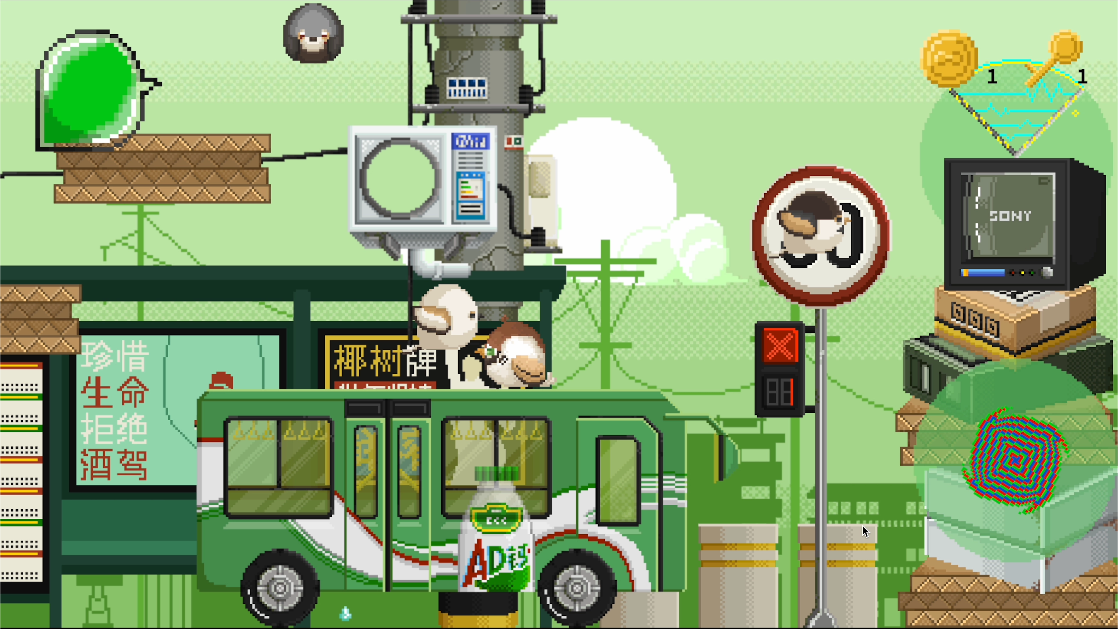 I decided to have the vintage pixel art as the game aesthetic to correspond with the theme of generation dilemma, trying to imitate the vintage games popular around the childhood years of Gen Z. In fact, I tried to portray the cityscapes characteristic with different phrases of Chinese towns and cities, creating the atmosphere of back into the childhood or teenager years as a Gen Z Chinese student. Designing the protagonist as a sparrow (bird) also offered me the gaze to illustrate the typical “city skyline”.