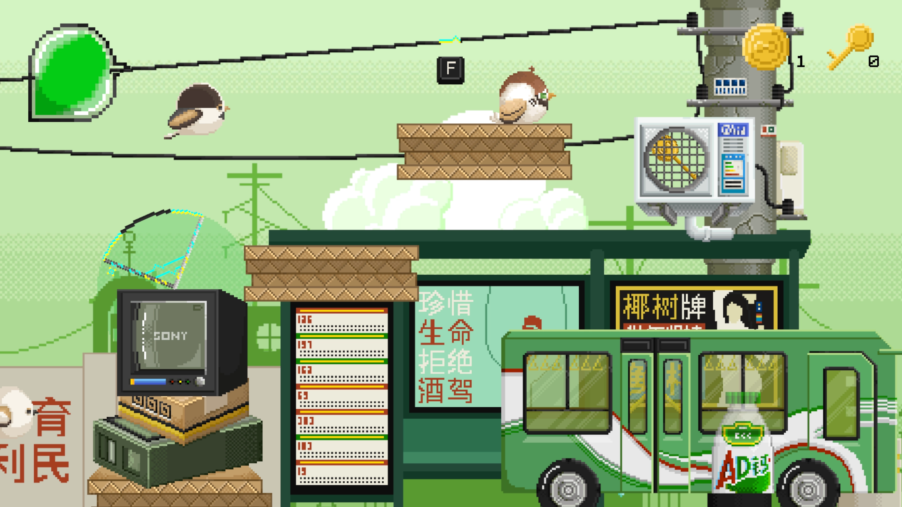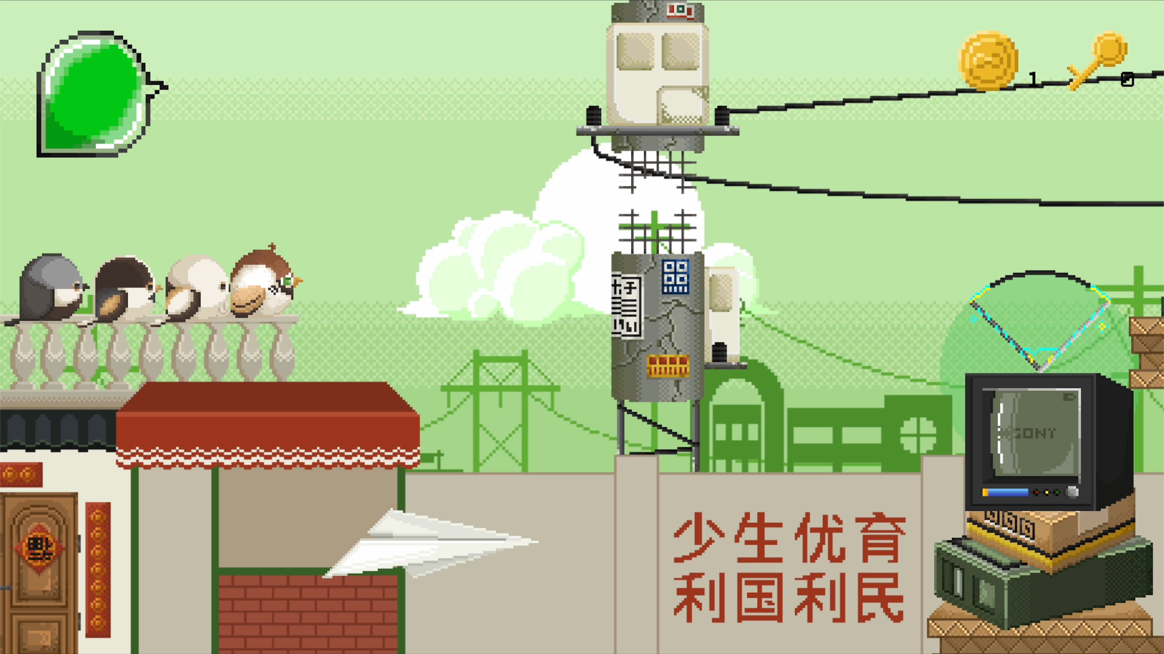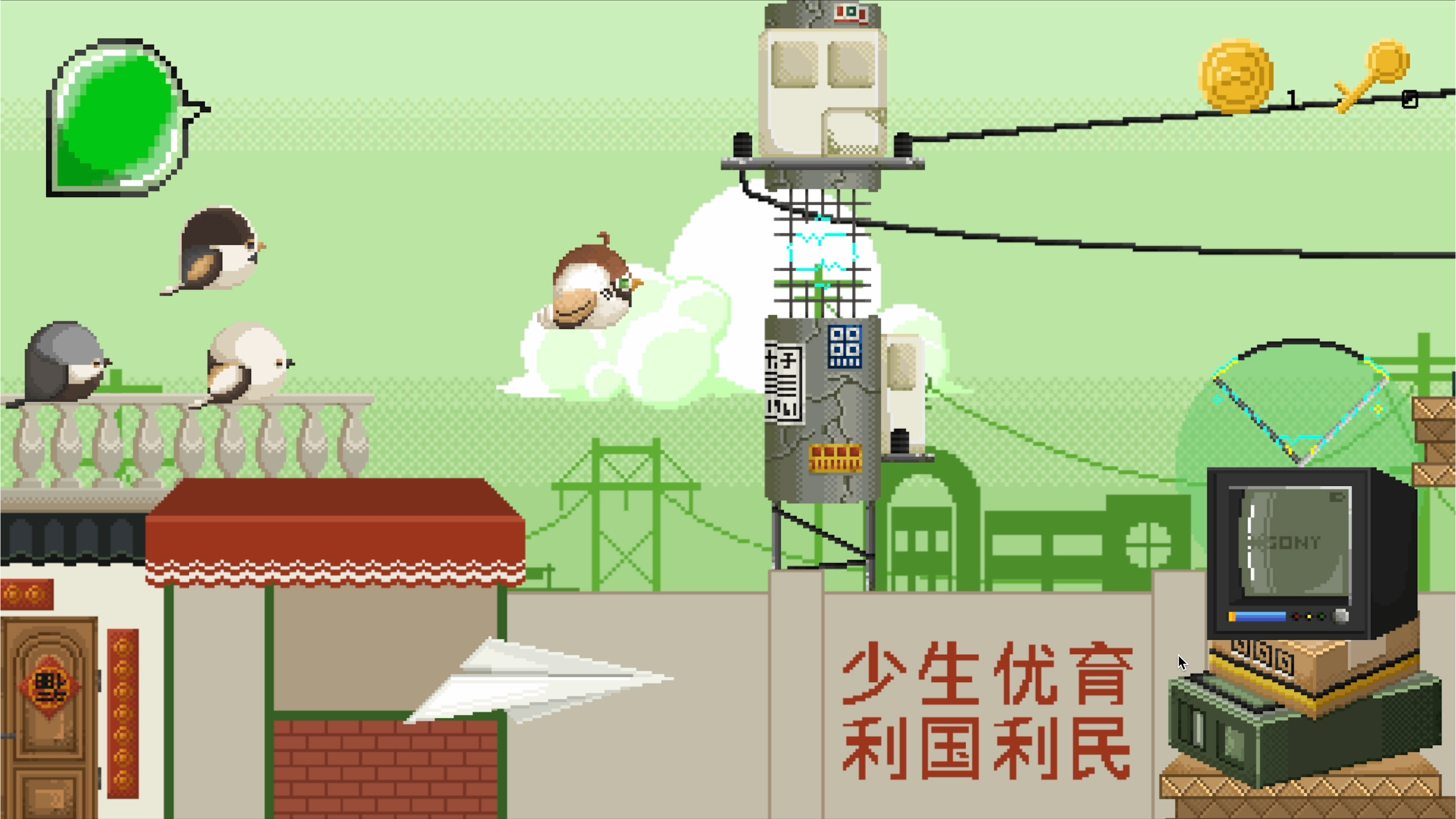 The sparrow for this level is a fledgling with lighter, cleaner colors as well, who also owns plenty of energy that is easy to recover. In this stage, the player will feel that the sparrow is energetic, light-weighted, and easy to control, just like the times-benefits of the economic boom experienced in childhood.