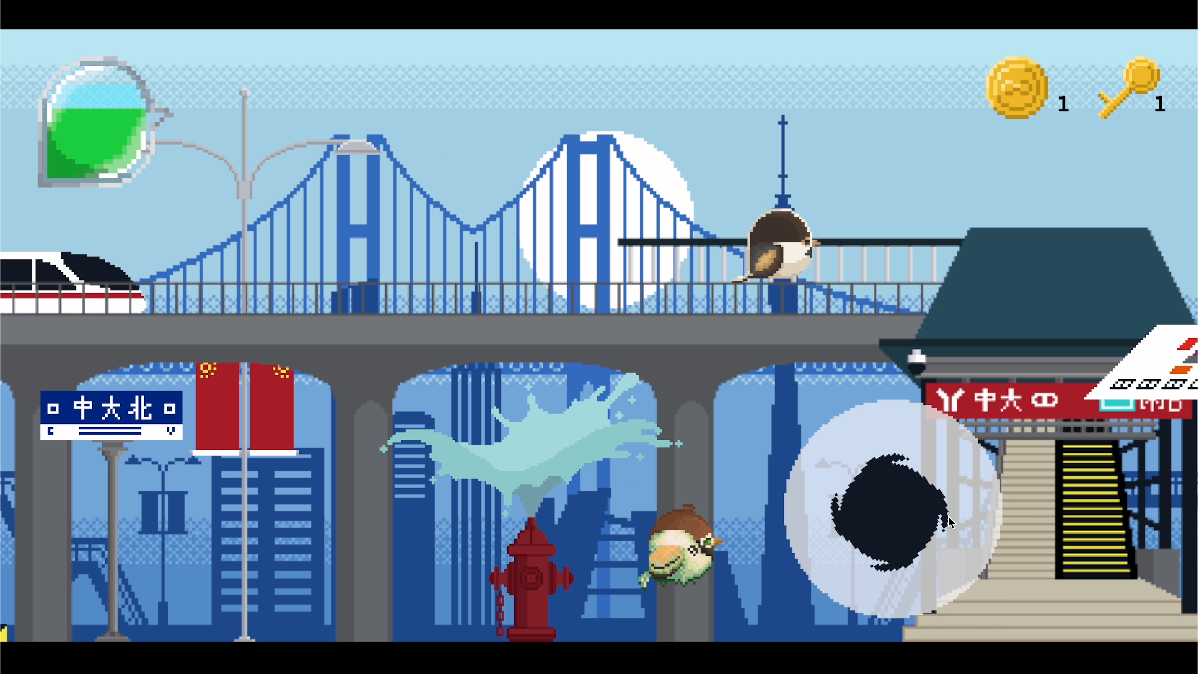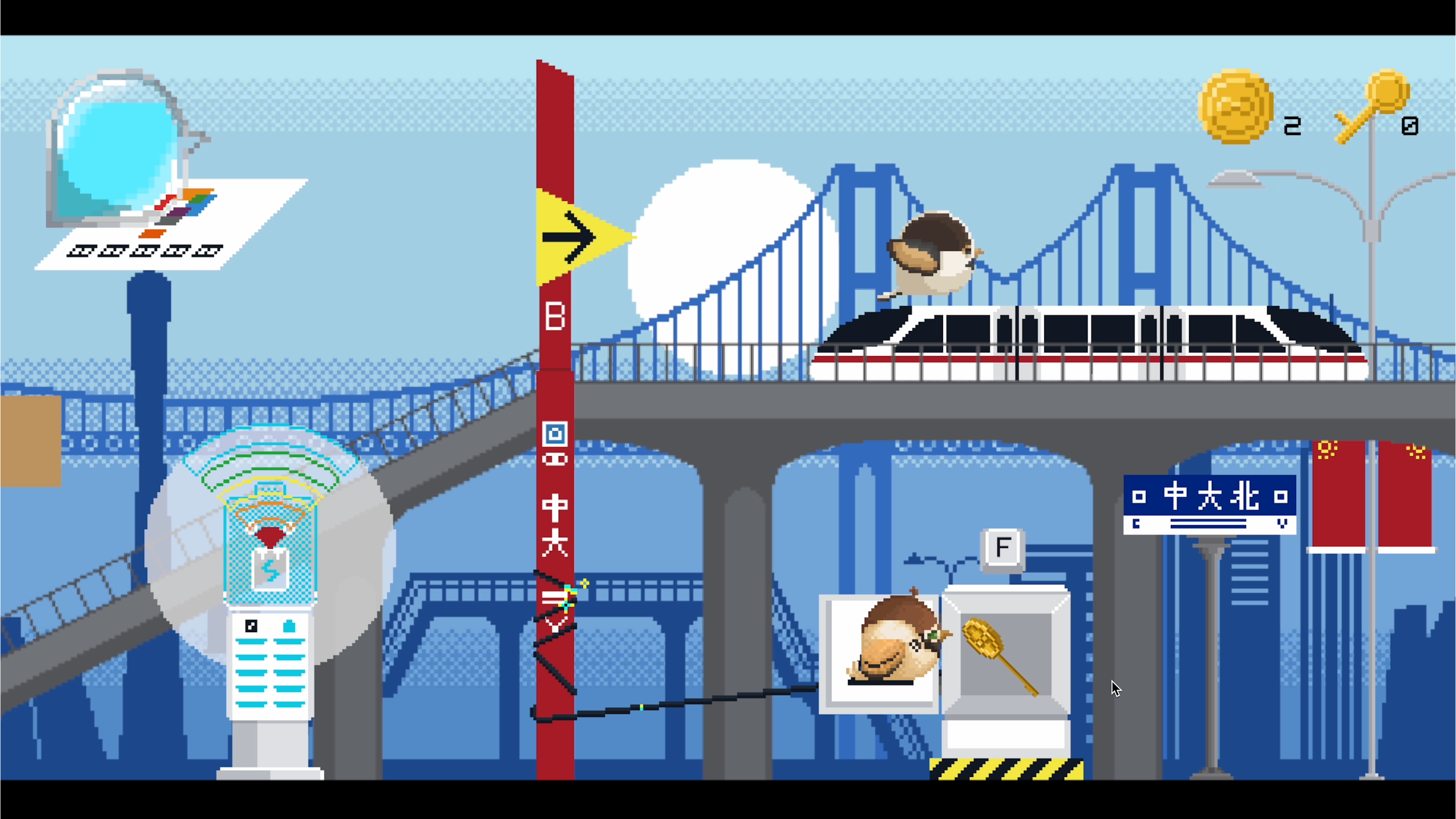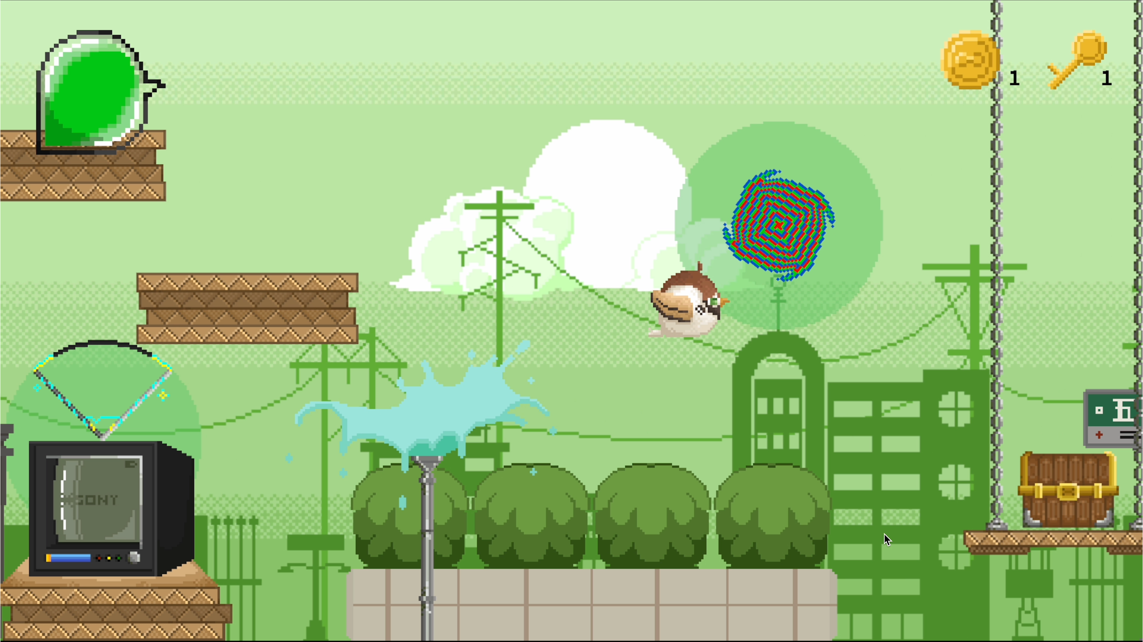 L3 represents the third and the last phase of the clawless sparrow’s life: early adulthood of General Z Chinese students(2018-2023), while they experience the post-pandemic economic recession. The game art of this map tries to replicate the current city or town scene of the barren and desolate post-pandemic China, which is the current stage of many smaller cities right now. It even has more space squeeze compared to L2, and the flying space became even more narrower(1920*855). This level is also a level with 2 collectible keys but only 1 Chest(coins), implying the sacrifices and hard work that were conducted before have lost their meaning.
