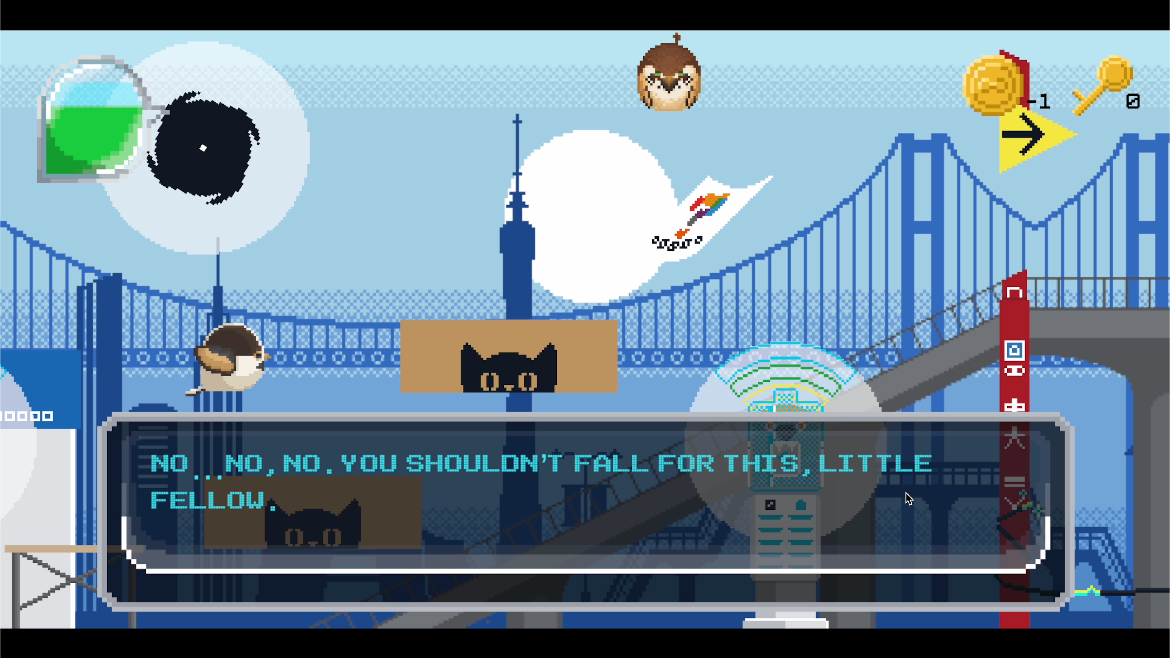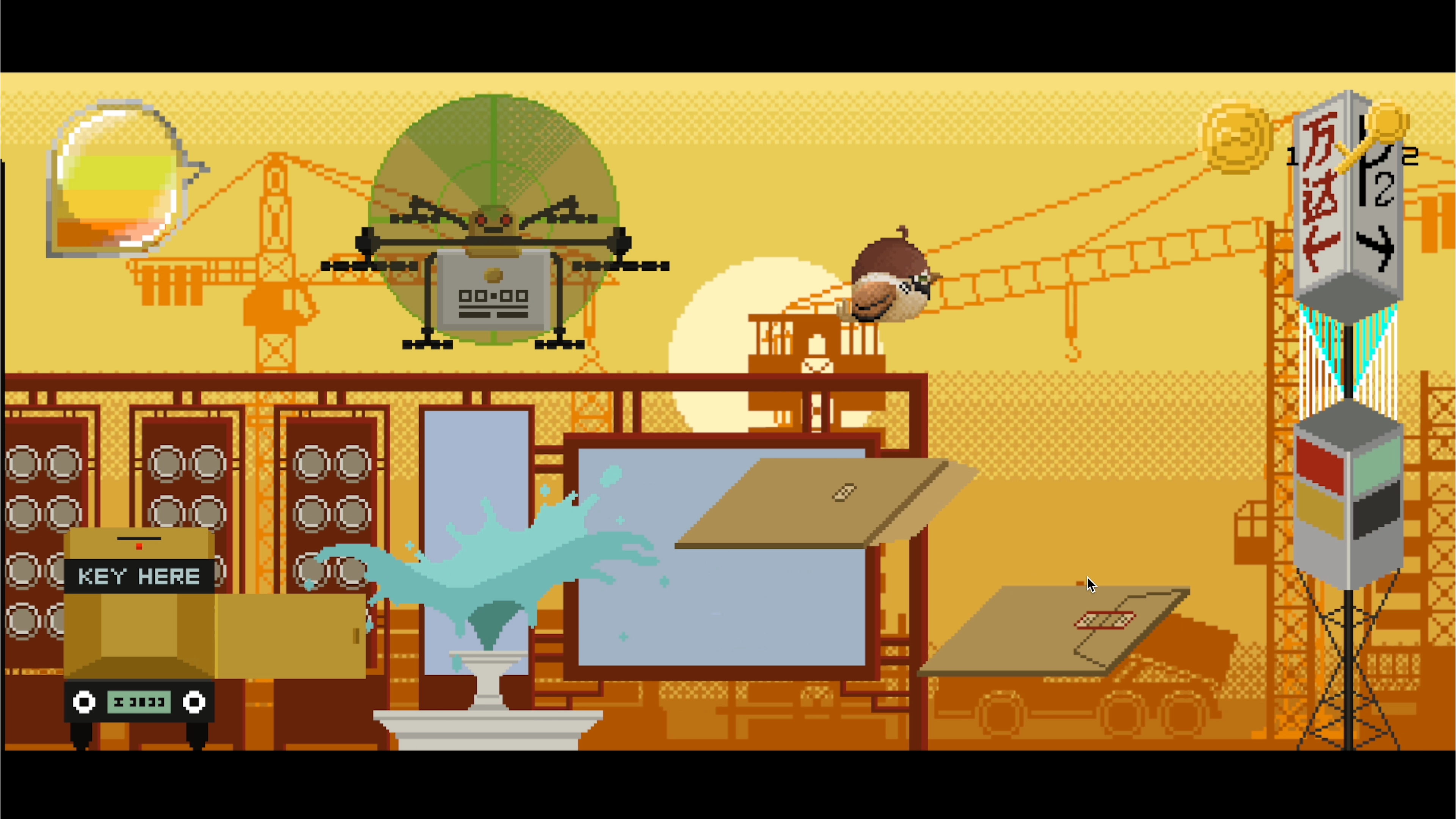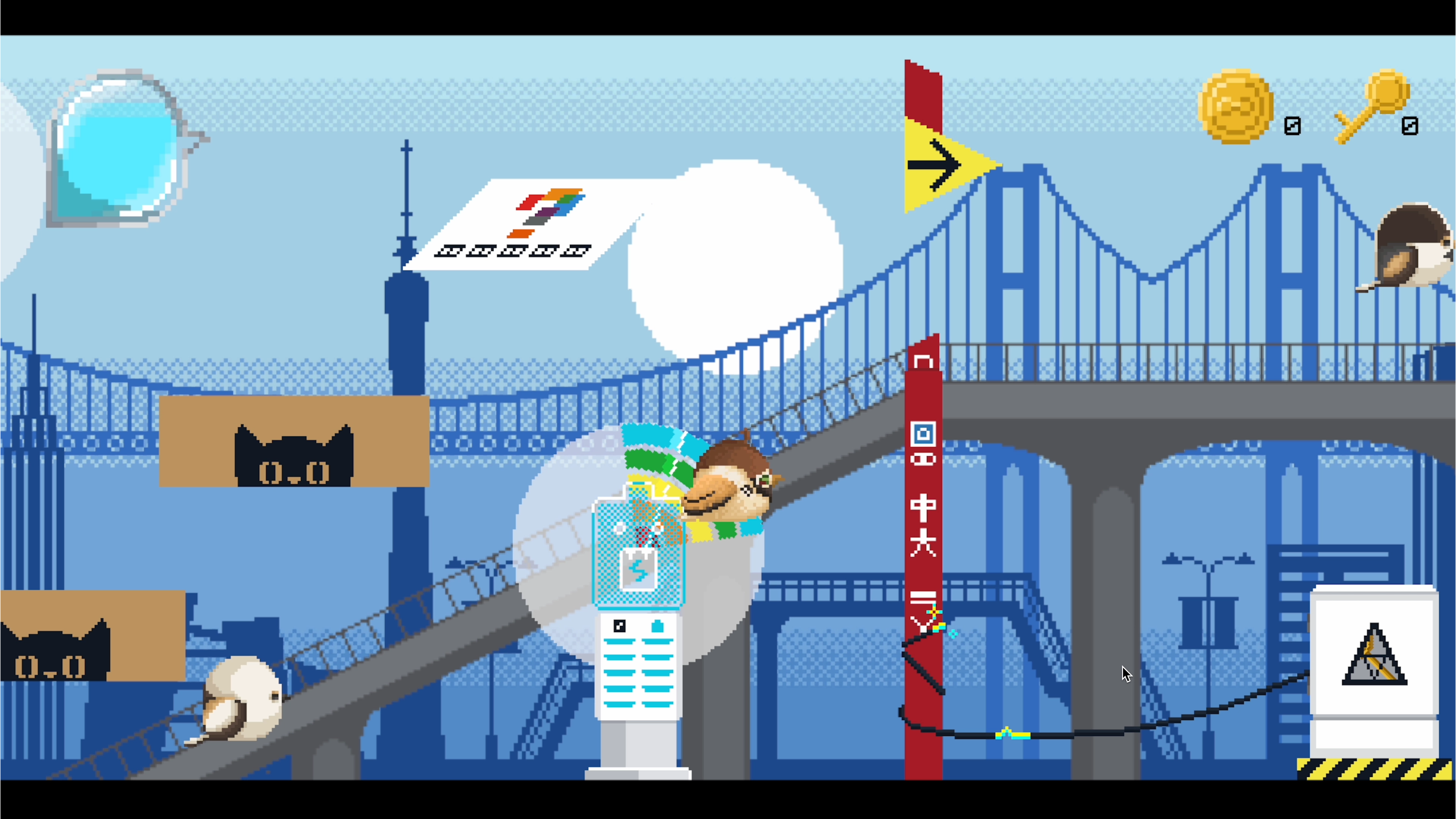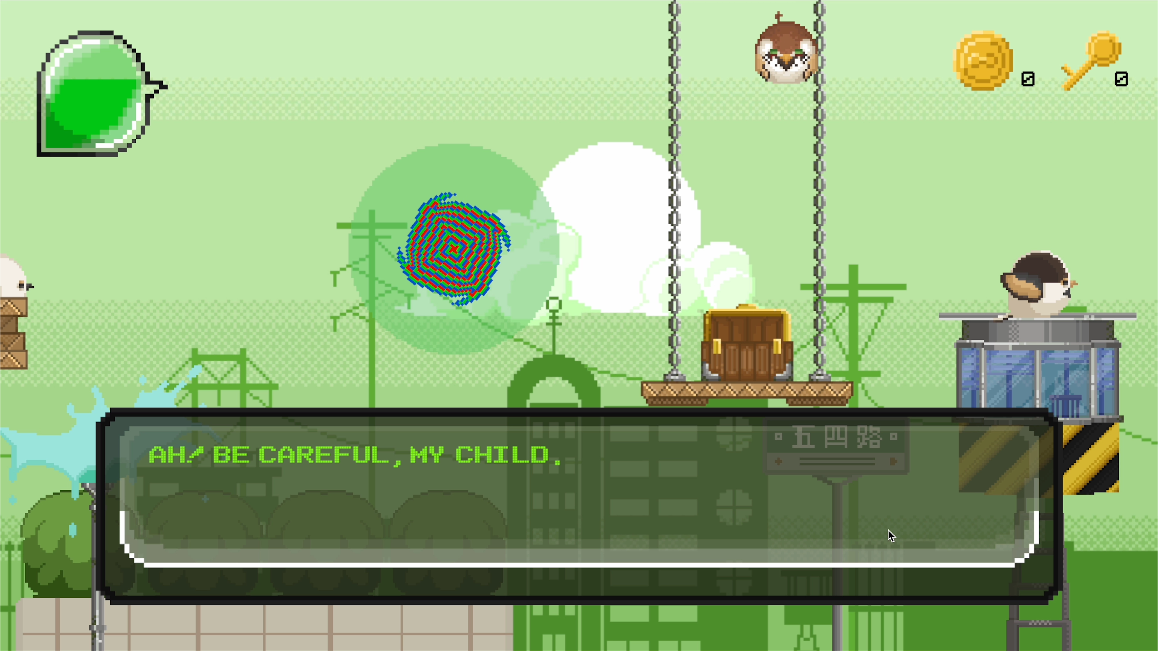L3 represents the third and the last phase of the clawless sparrow’s life: early adulthood of General Z Chinese students(2018-2023), while they experience the post-pandemic economic recession. The game art of this map tries to replicate the current city or town scene of the barren and desolate post-pandemic China, which is the current stage of many smaller cities right now. It even has more space squeeze compared to L2, and the flying space became even more narrower(1920*855). This level is also a level with 2 collectible keys but only 1 Chest(coins), implying the sacrifices and hard work that were conducted before have lost their meaning.