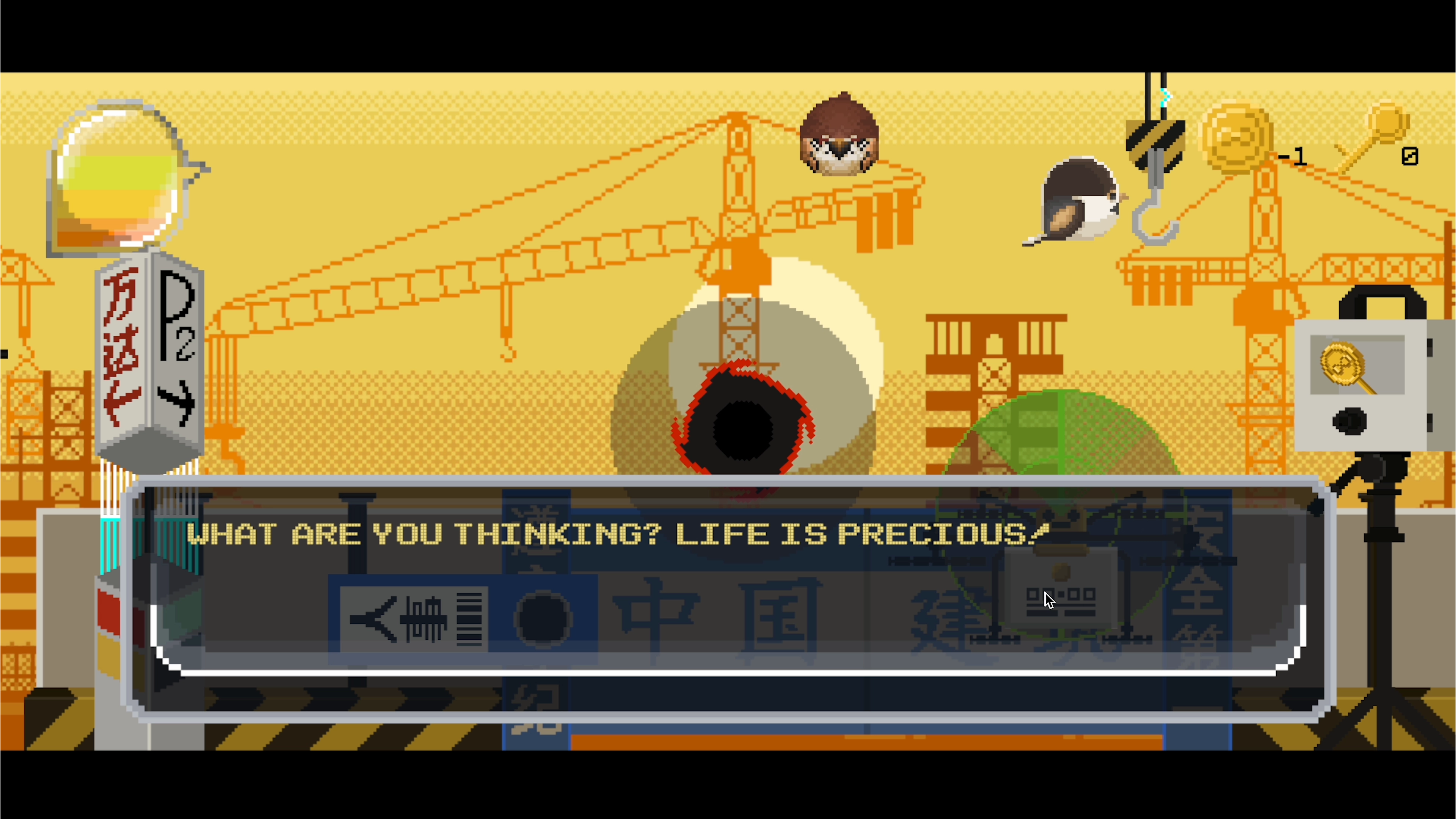 The Black Long-Tail Tit will not only accompany the player in both L1 and L2, but also serve as the strongest competitor for the sparrow. In fact, it will have a greater speed in both L2 and L3, although potentially slower reaction. However, it will commit suicide at the L3, representing people who could not accept the gap between their effort and gain, or just want to end the hopeless suffering.