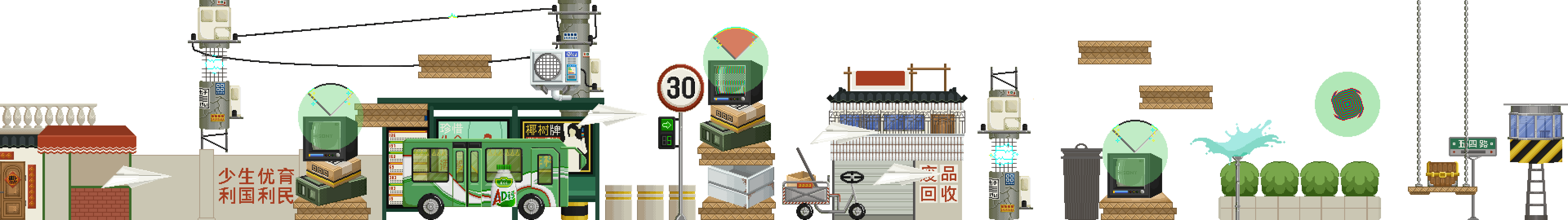 L1 represents the first phase of the clawless sparrow’s life: the early childhood of General Z Chinese students (2008-2013), while they experienced an economic boom and the late phase of the one-child policy. The game art of this map tries to replicate the town scene of the millennial years of China, the memory of my childhood about streets and architecture. L1 is relatively easy to finish because the player owns the complete HD screen as the sparrow flying space(1920*1080).