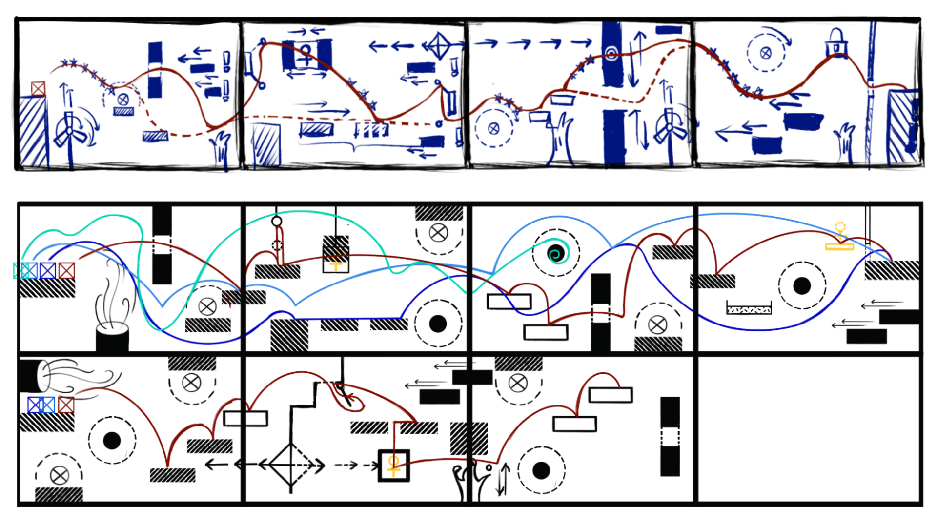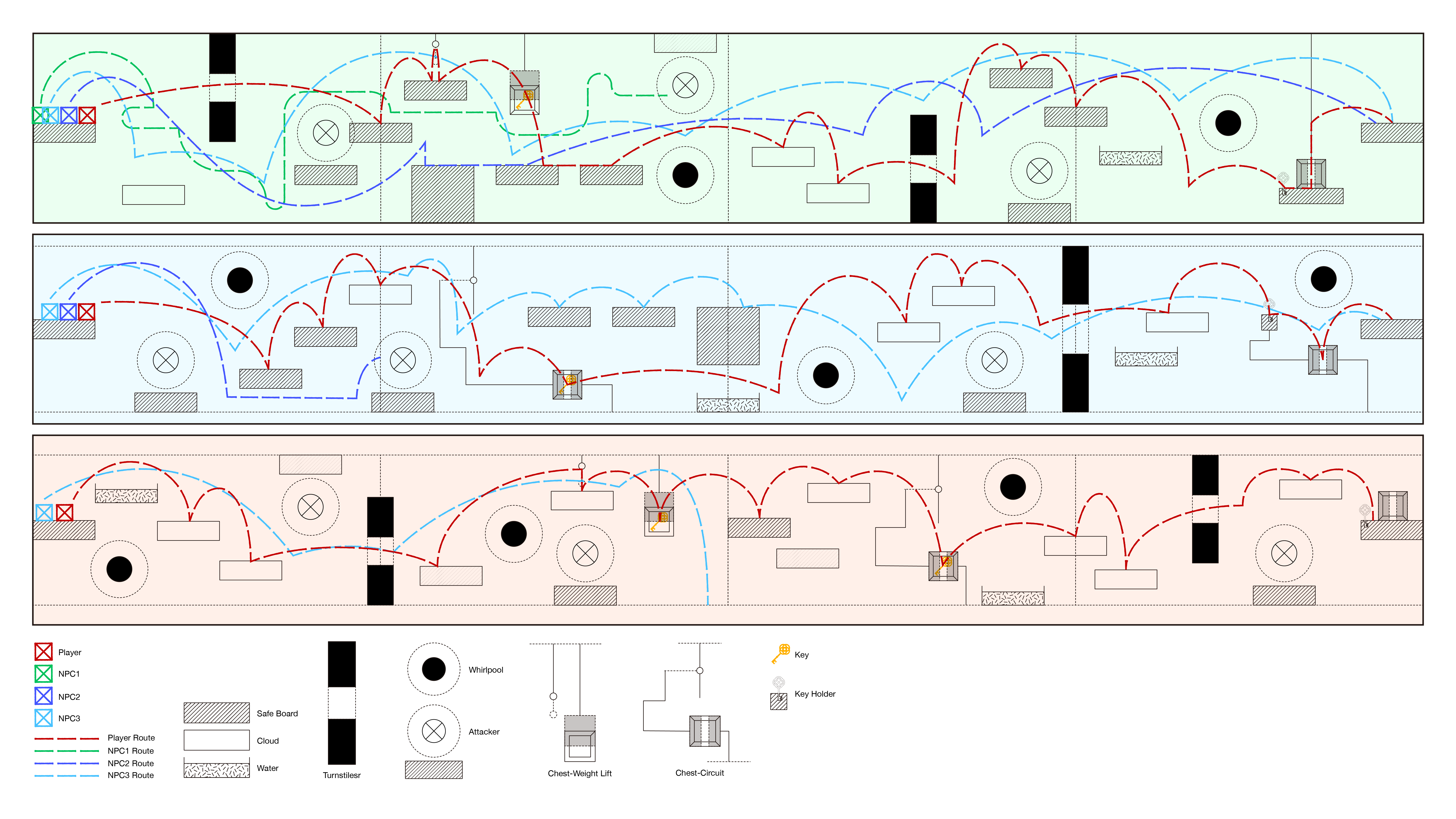 (P1) Level Concept Design. Designed in Febuary 2024. (P2) Scene Draft. Drafted in Febuary 2024. (P3) Level Draft. Drafted in January 2024. (P4) Character Draft. Drafted in Febuary 2024.