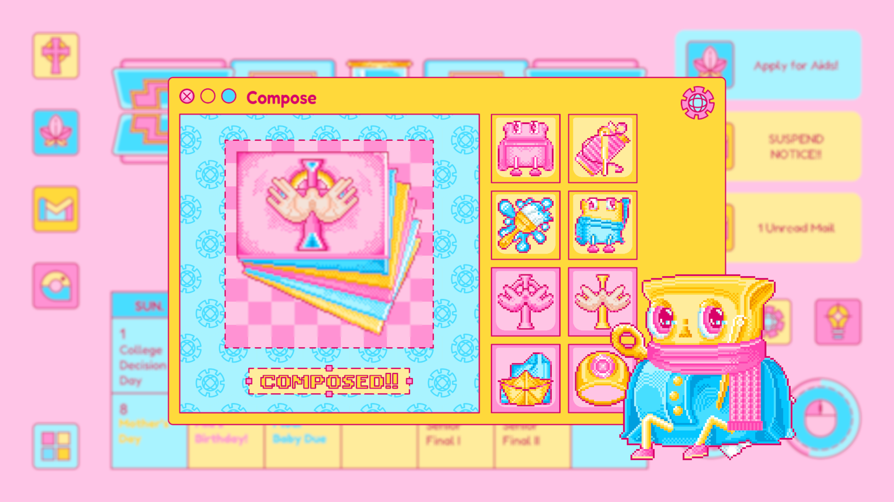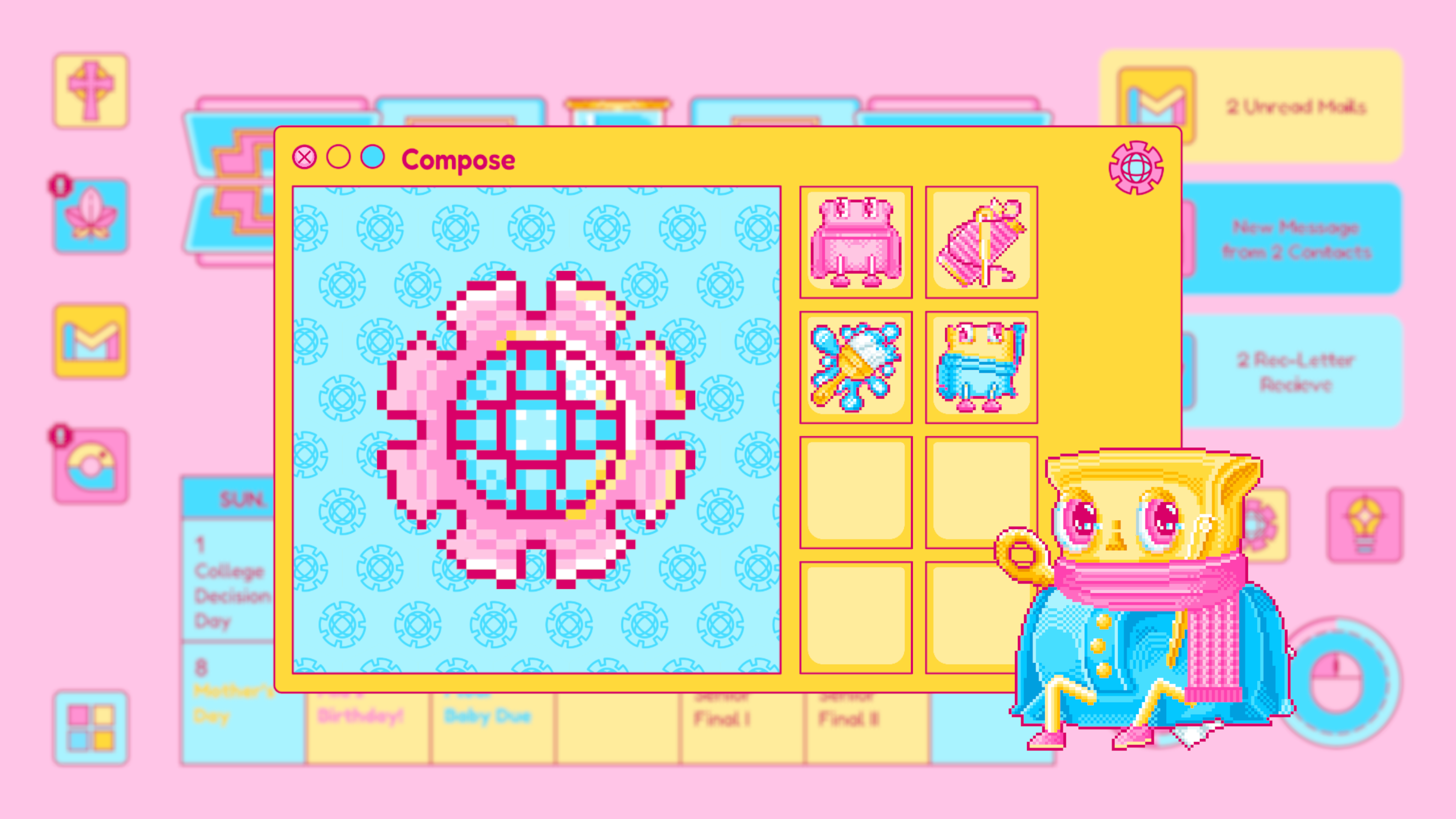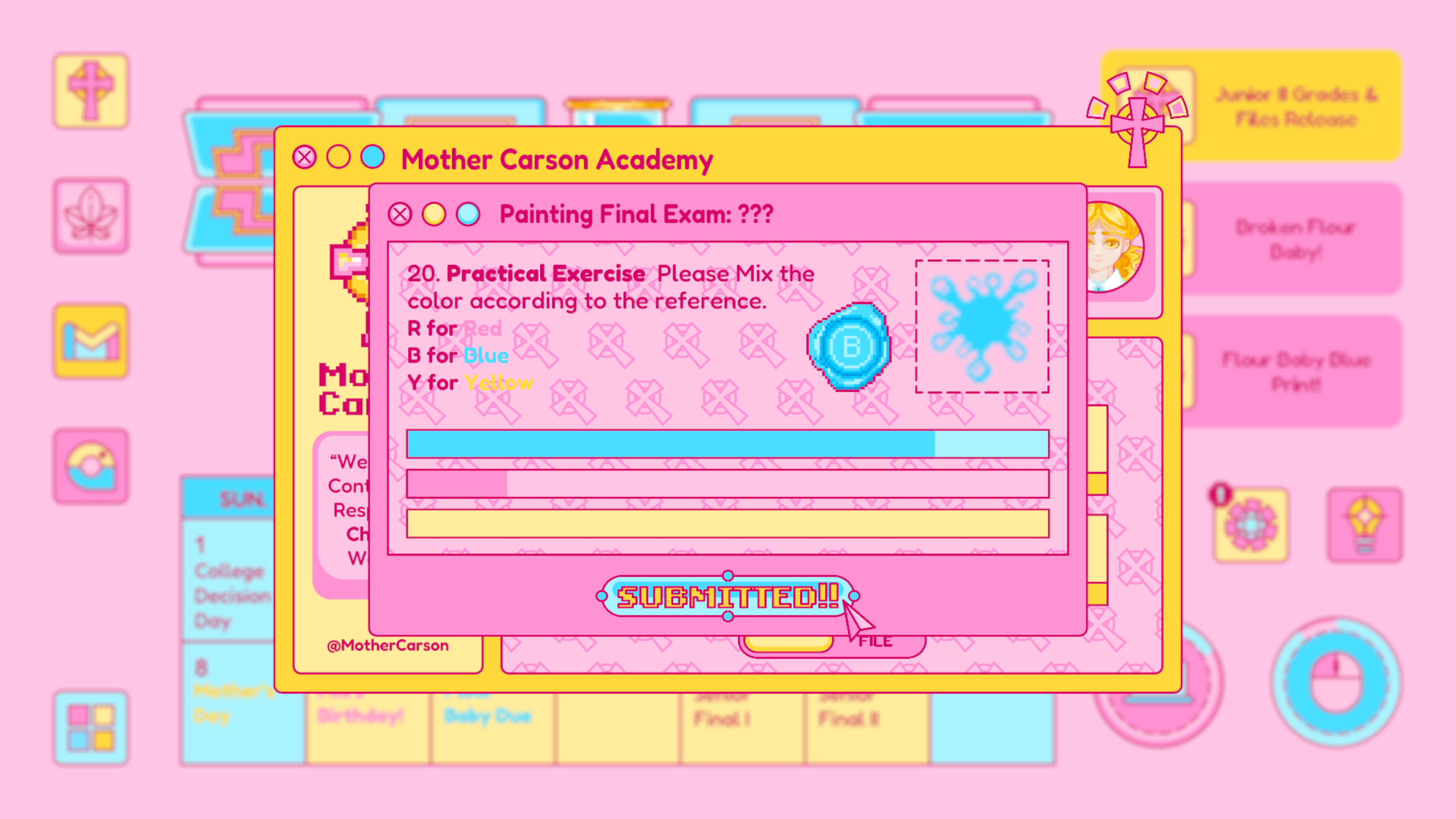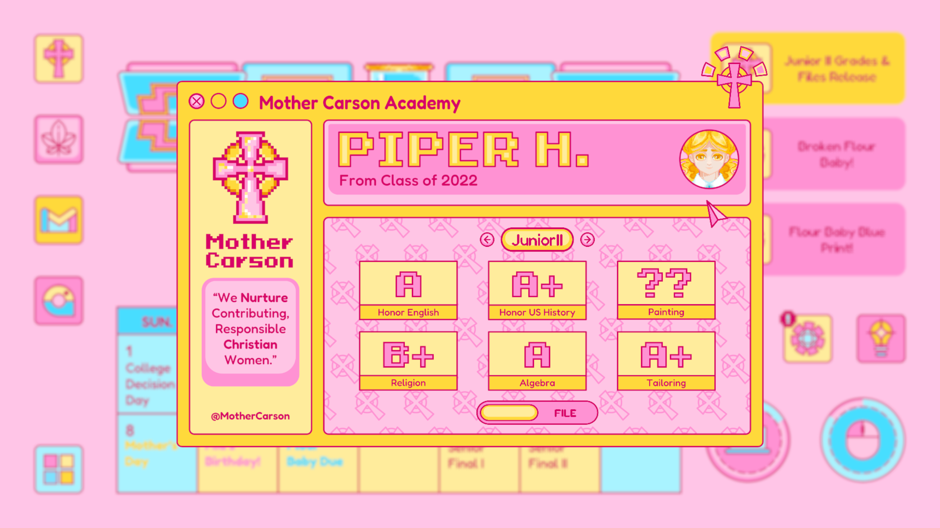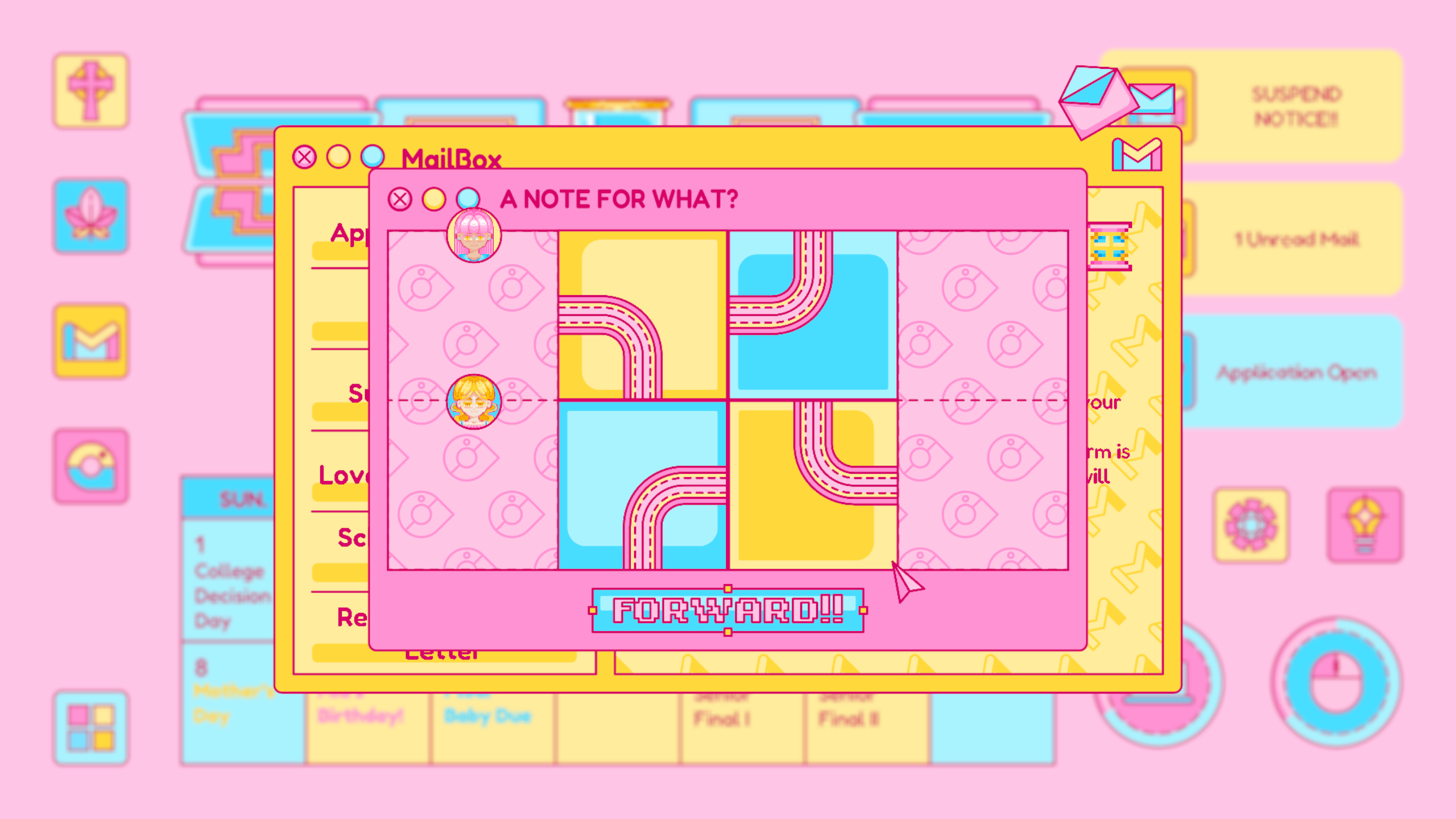 Mail is designed based on any real life email app, which is where Piper receives important and formal notice from colleges, schools, classes and instructors. The update of the mail usually signifies an important notice to change Piper’s current status. For example, the rejected letter from her dream school.