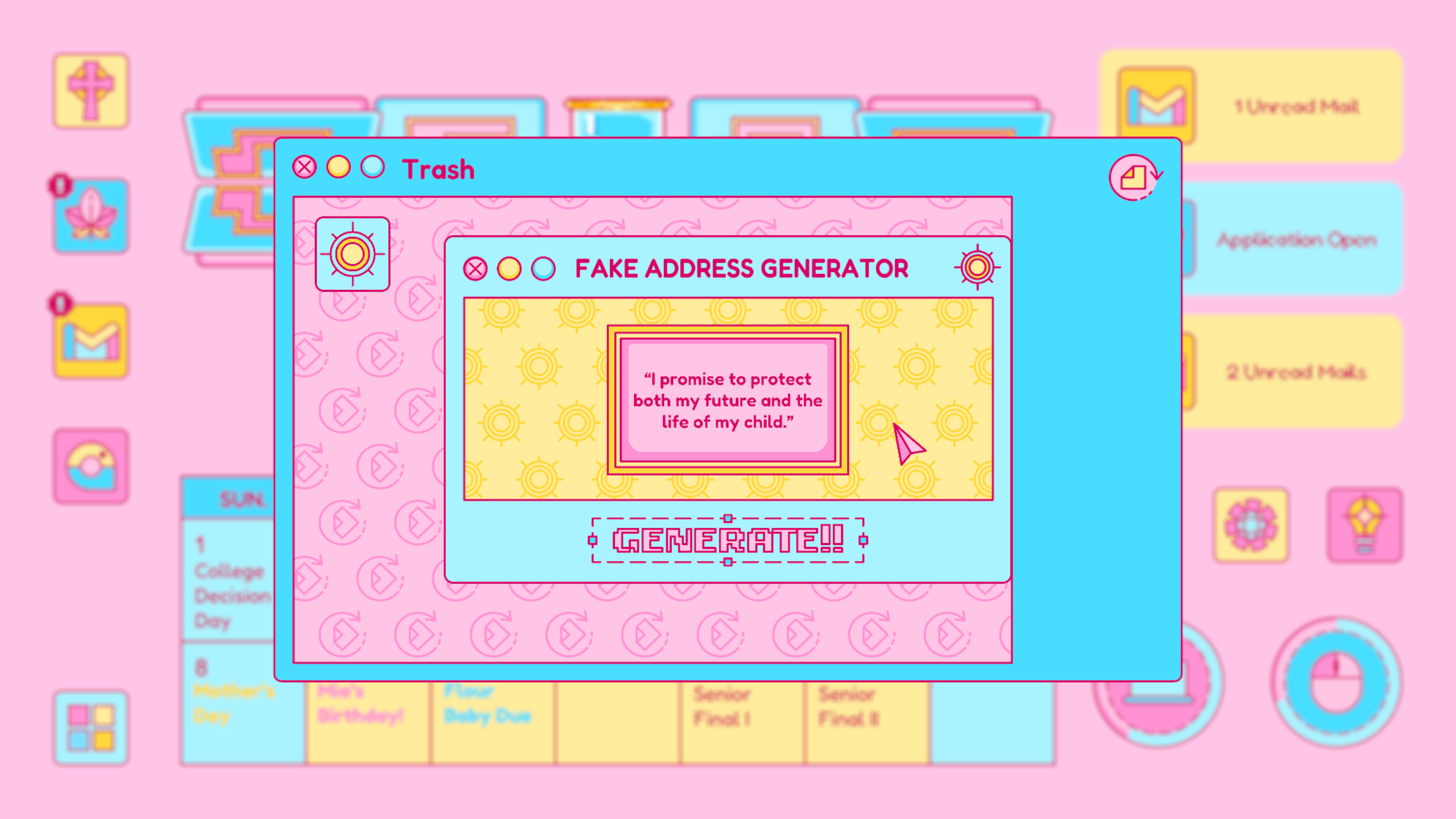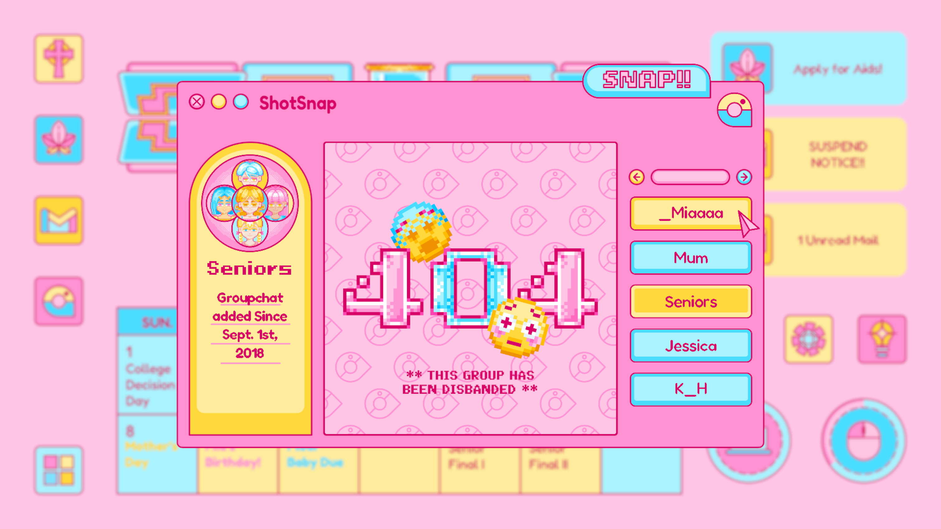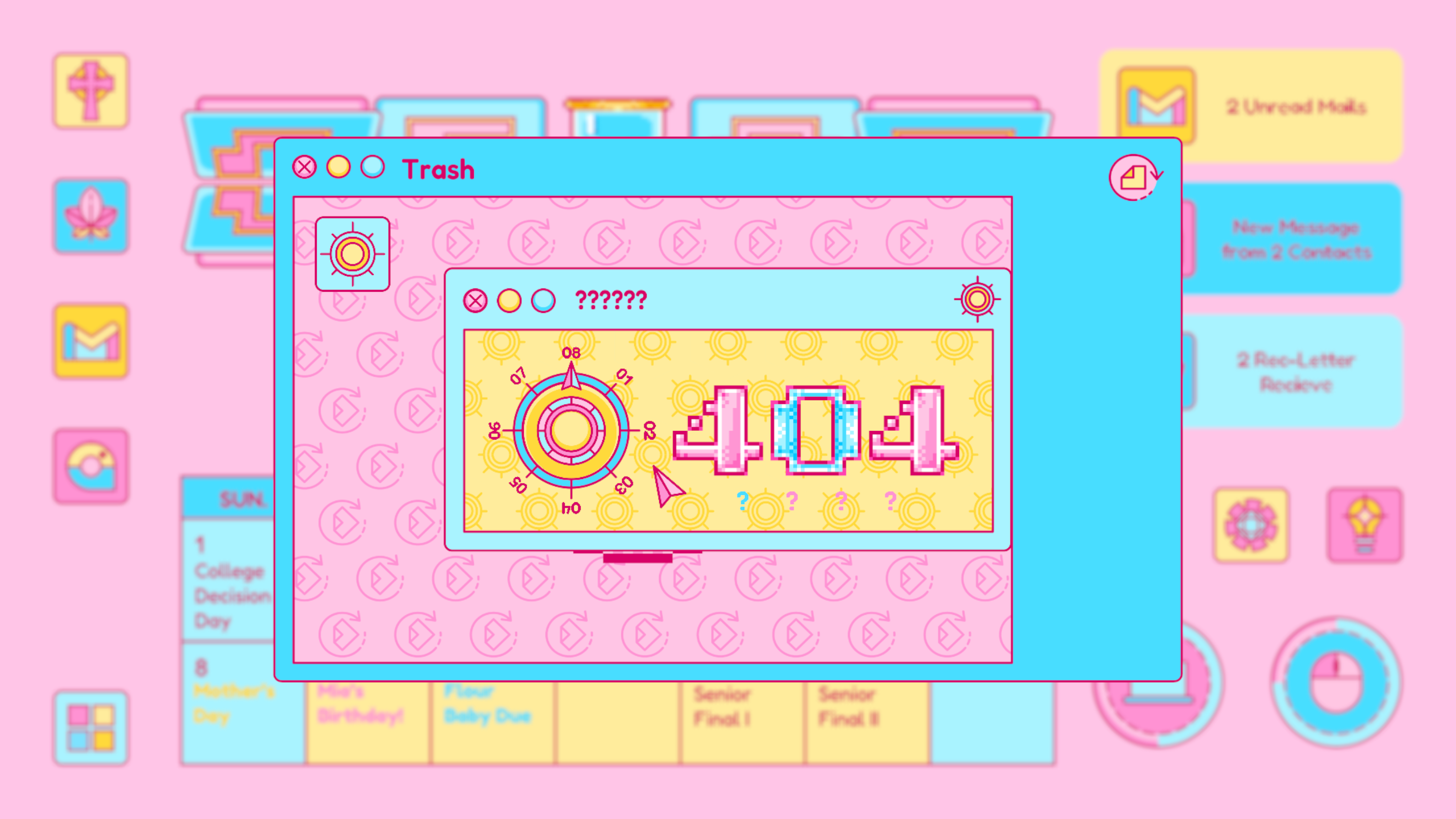 Similar to other computer-interface games on the market, I want to have the aesthetic and the design of the user interface to be representative to the particular time spot. In addition, it should also be representative of its owner and atmosphere. Although the game narrates to be a story of a 2022 high school graduate experiencing the strip away of her reproductive rights before becoming an adult, it should also be a teens year story with specific youth, dreamy, Gen Z sense atmosphere. As a result, I adopted the color proportion of one of Taylor Swift’s albums (Lover) and the Y2K style as the main aesthetic of this game.