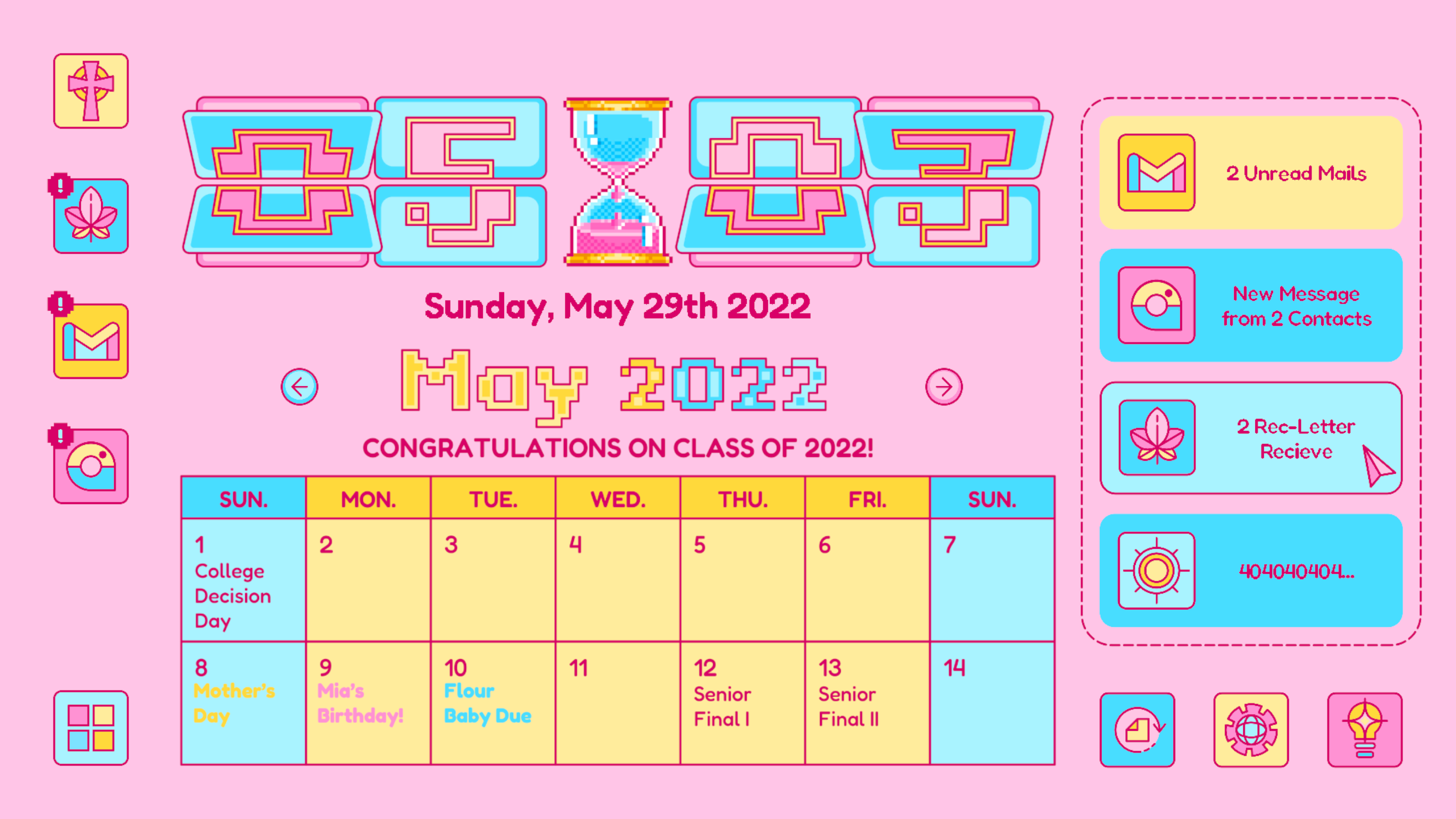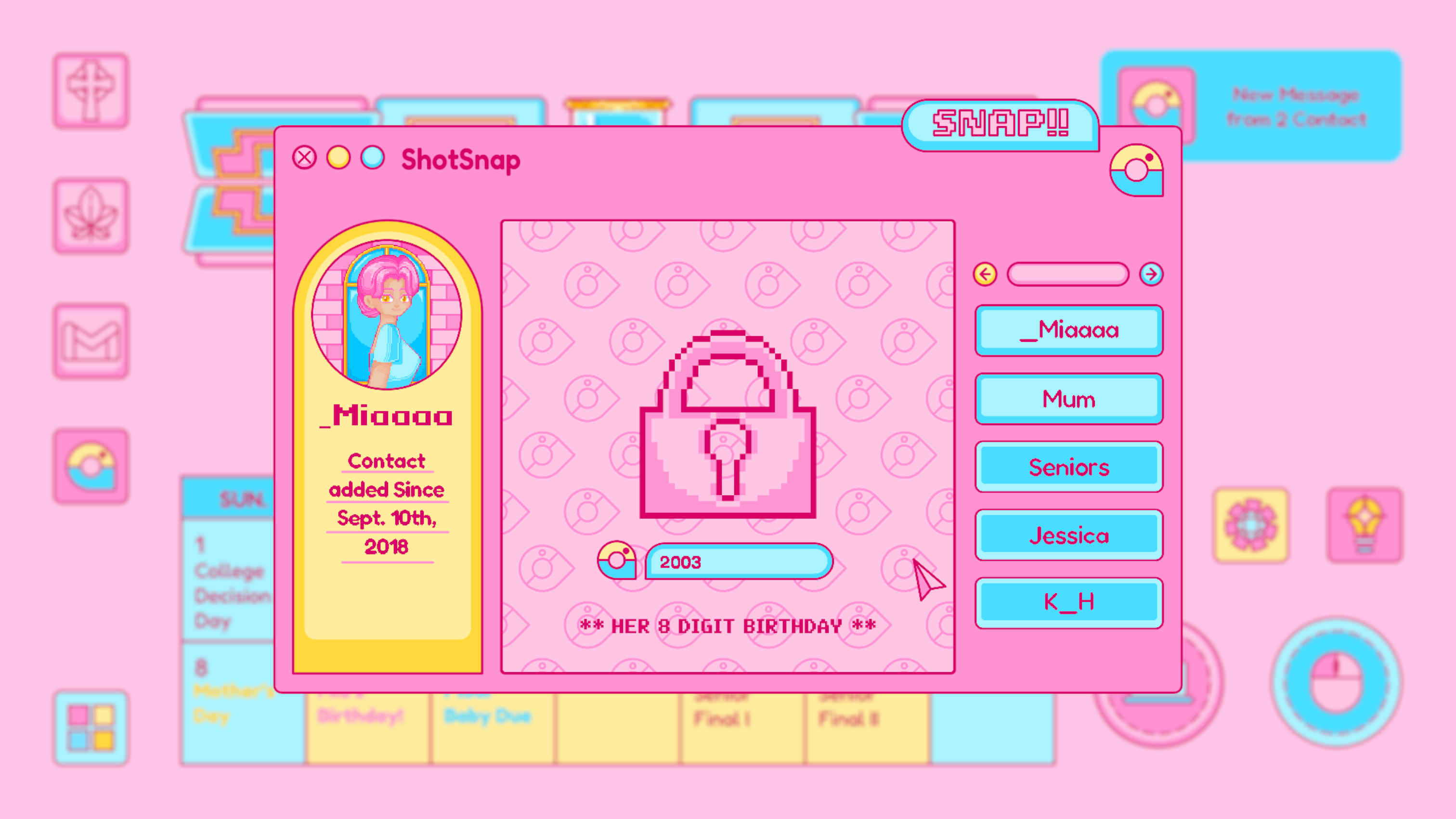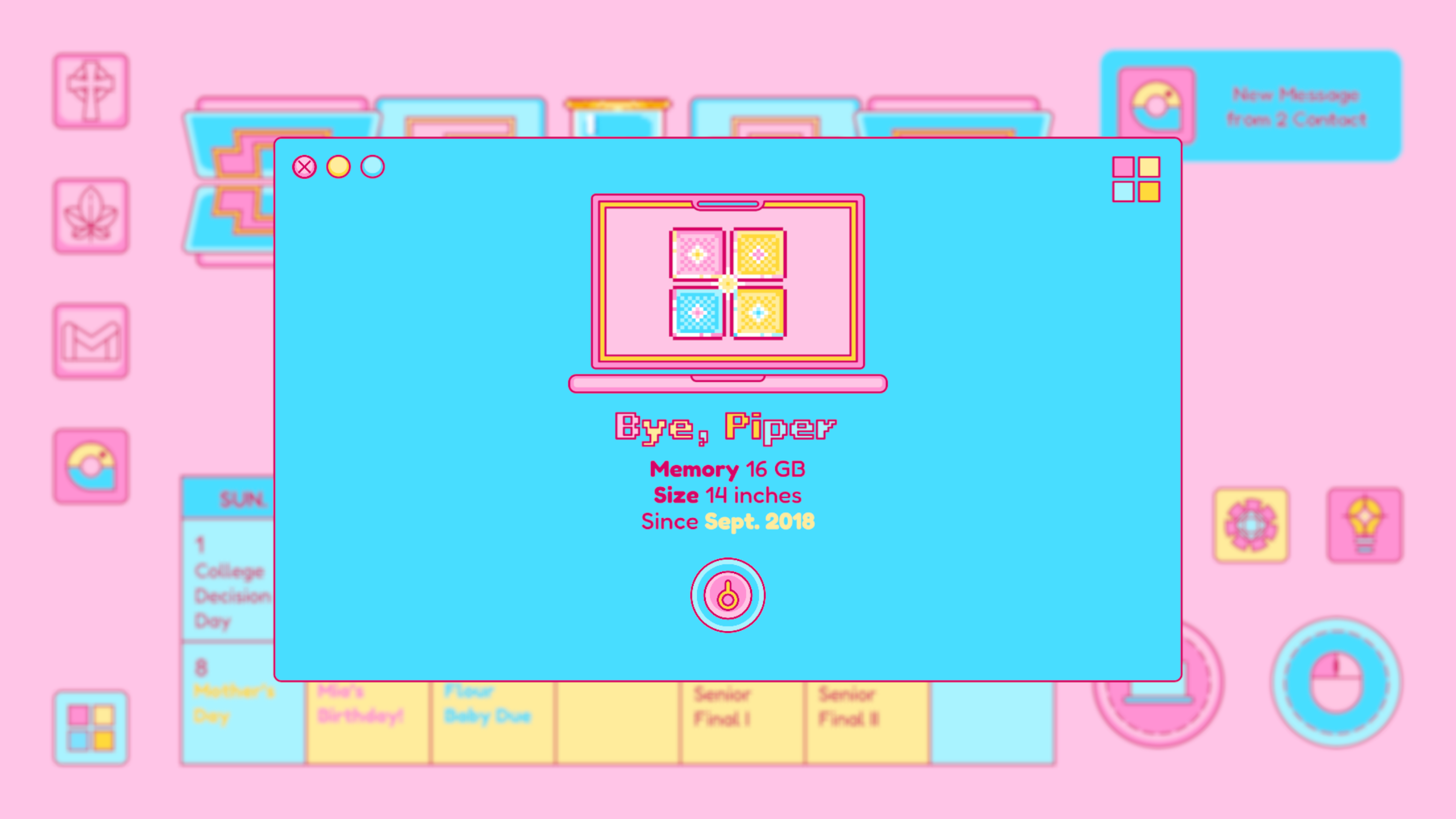 Similar to other computer-interface games on the market, I want to have the aesthetic and the design of the user interface to be representative to the particular time spot. In addition, it should also be representative of its owner and atmosphere. Although the game narrates to be a story of a 2022 high school graduate experiencing the strip away of her reproductive rights before becoming an adult, it should also be a teens year story with specific youth, dreamy, Gen Z sense atmosphere. As a result, I adopted the color proportion of one of Taylor Swift’s albums (Lover) and the Y2K style as the main aesthetic of this game.
