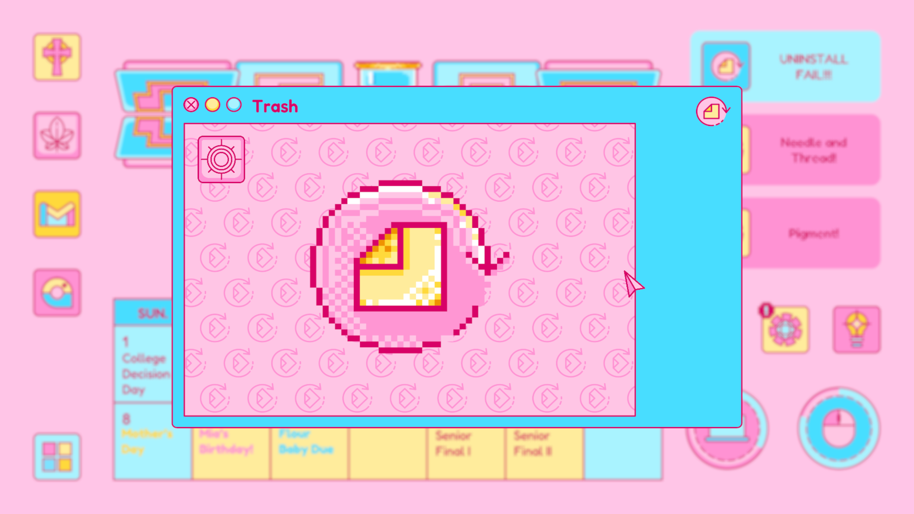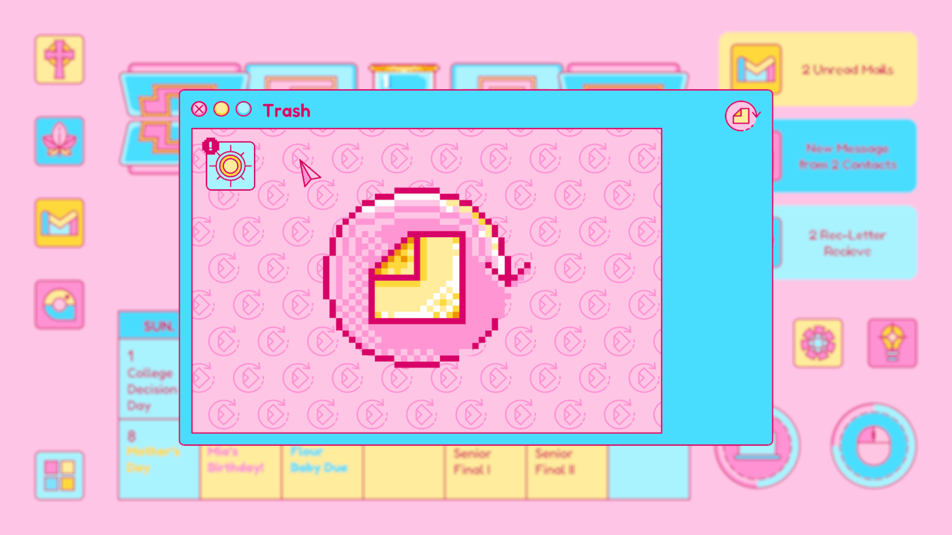 Trash is designed based on any real life computer trash, which contains a lock program inside. The player will only use the lock program here at the beginning of the second part. It is the fourth app to be opened, unlocked from School.